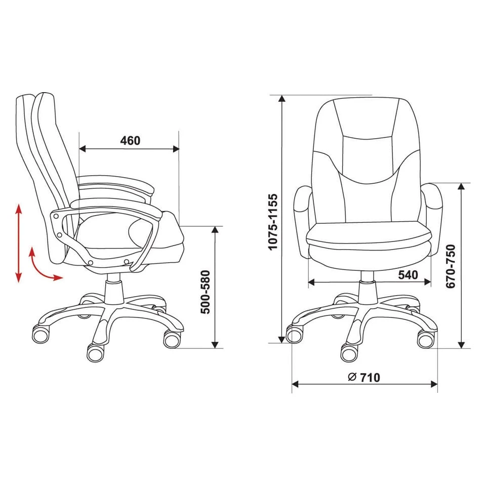 Подлокотники: пластиковые с накладками